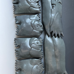 “I have always been drawn to figurative work. Using figures when making art allows me to show the effects of social and political issues on contemporary living. A sense of anxiety and uncertainty exists in the dynamics of each piece. Relationships, the current political climate, gender roles and issues, our environment: these themes in my work reflect on the precarious nature of modern living. Growing up on a farm with exposed earthenware clay in the pasture, clay has always been second nature to me as my expressive medium of choice.”- Jerome Dubas
